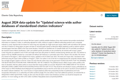 全球前2%顶尖科学家榜单是基于Scopus数据库的引用数据系统分析,使用总引用量(区分自引和他引,提供自引数据)、Hirsch H-index、共同作者修正的Schreiber Hm-index、单独作者、单独或者第一作者等6个关键因素评分,从全球近700万名科学家中遴选出世界排名前2%的科学家,涵盖了22个领域和174个子领域,为科学家长期科研表现提供了一个衡量指标,能够更客观、更真实地反映科学家的影响力。其中生涯科学影响力榜单(Career)统计科学家职业生涯期间的综合表现,而年度科学影响力榜单(Singleyr)则更聚焦上一年度的学术影响力。入选榜单,意味着该学者在其研究领域具有较高的世界影响力。(详见链接:https://elsevier.digitalcommonsdata.com/datasets/btchxktzyw/7