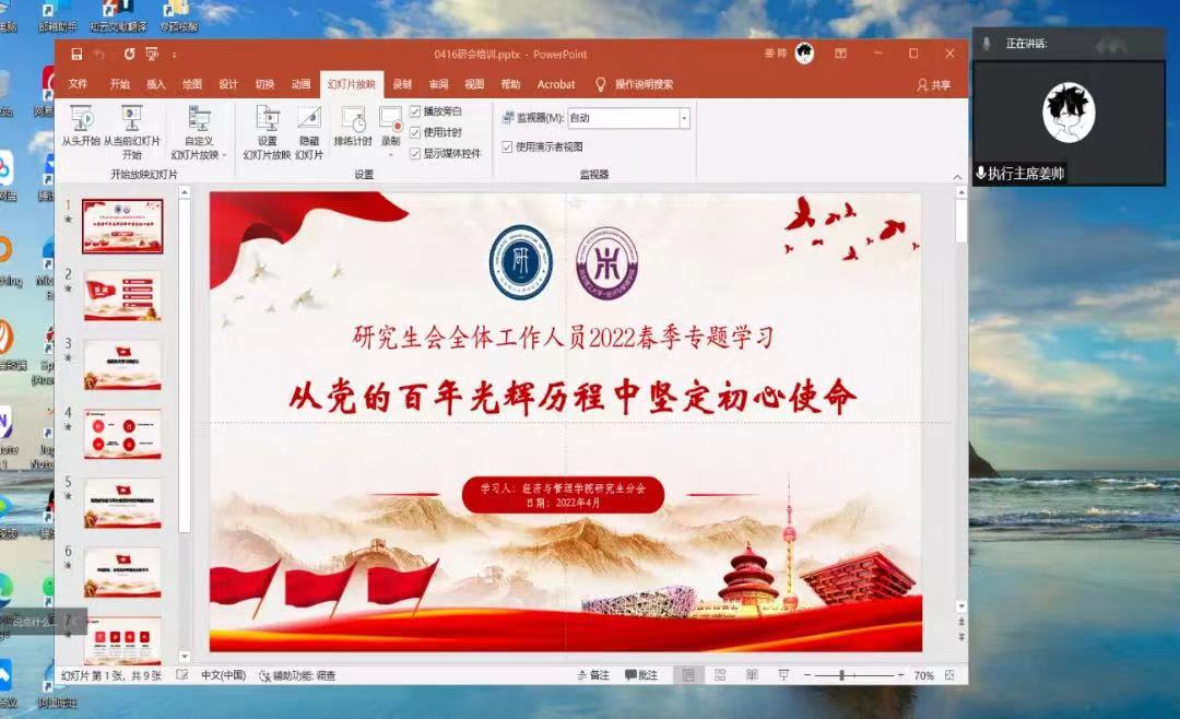 4月16日,williamhill英国威廉希尔研究生会线上召开春季学期工作例会。会议由研会执行主席姜帅主持,研究生分会全体成员参加会议。