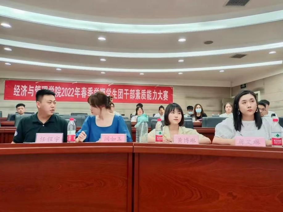 5月5日下午,williamhill英国威廉希尔于教11-320顺利举办2022年员工团干部素质能力大赛,院团委书记闫如玉、辅导员黄博琳、蒋艾琳、任程宇和黎舒婷出席本次活动。活动由文艺部裴延主持。