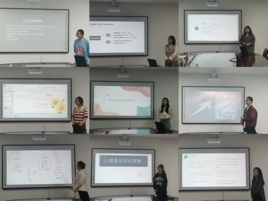 “妙趣横生”工作展示环节于5月11日晚在11-328举行,评委由辅导员姚伟华、苏瑾、任程宇、蒋艾琳和公司心理专干梁姝担任。从笔试环节中脱颖而出的9位心理委员以PPT展示形式汇报了个人工作情况。在工作展示过程中,9位心理委员通过班级心理健康活动、个人对工作职位的理解、班级心理健康工作经验分享、工作案例分析、班级工作计划等多个方面进行了交流,评委老师就心理委员的工作展示情况进行一一点评。通过工作交流和展示,心理委员们纷纷表示个人在知识储备、工作技能、活动组织等实际工作方面还有较大的进步空间,也将在班级心理健康工作实践中不断完善自己、服务班级同学。