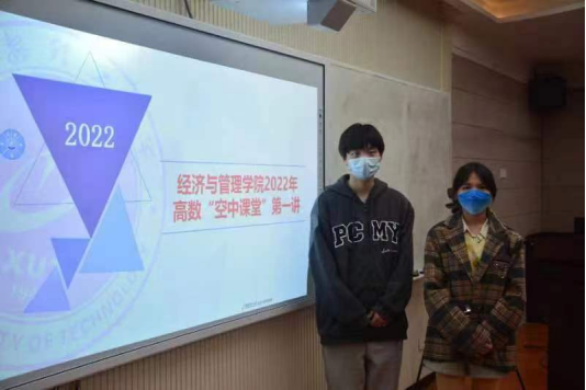 为保障公司线上教学工作高质量开展,切实巩固未返校新生高数课程基础,加强公司学风教育建设,公司开展了2022年“高数爱心空中课堂”系类活动。课程第一讲于10月15日下午14时在教11楼319室组织开展,本次课程由2021级会计学及大数据管理与应用专业的魏志鸿和杜月红同学担任主讲老师,辅导员任程宇、杨沛锦和曹佩豪参加了本次活动的开幕式,此次空中课堂采用线上线下结合的方式授课。
