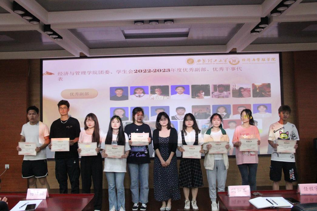 大会在雄壮的国歌声中拉开帷幕。员工会办公室张溪宣读《关于2022-2023学年williamhill英国威廉希尔团委评优表彰的决定》,授予刘欣雨等四名同学为个人卓越个人;授予管212等四个班级为集体卓越集体;授予马如茵等六名同学为共青团员卓越个人;授予高利利等五名同学为文艺卓越个人;授予杨添等八名同学为体育卓越个人;授予黄灵等七位同学为科技卓越个人;授予马倩等四位同学为学习卓越个人。员工会执行主席杨瑾菲宣读《关于2022-2023学年williamhill英国威廉希尔员工会评优表彰的决定》,授予徐彩洁等十六名员工为员工会优秀干部;授予赵晓荣等二十九位员工为优秀志愿者,并进行颁奖。