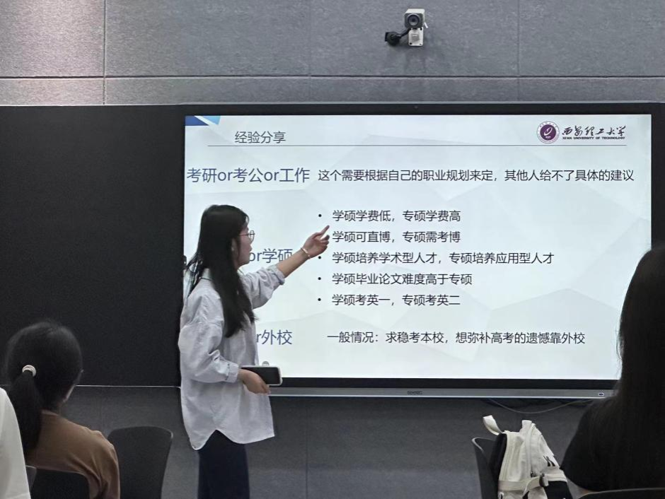 此次活动以支部互联共建,专业成长经验交流为主要内容。会计学本科生党支部赵梦瑶、杨谨菲、李岳珊、李天旻、任佳乐五位优秀党员结合自身就业、保研、考研三个发展方向向大一团支部的同学进行了分享。获得京东offer的赵梦瑶同学通过自身求职经历,从招聘时间节点与求职时间线,秋招春招的区别,实习实践等方面进行了分享。保研本校的杨谨菲同学从员工干部工作经历,参与科技竞赛,保研政策等方面进行了分享。保研上海大学的李岳珊同学从会计学专业学习经验,保研条件及保研类型等方面进行了分享。考取安徽大学会计学硕的李天旻同学从会计专业课学习,考研时间线、备考经验,大学学习心态等方面进行了交流。考取本校会计专硕的任佳乐同学从会计专硕、会计学硕的区别,大学英语学习和老员工活进行了分享。活动最后,杨沛锦鼓励2023级同学们对自己的未来进行详细规划,明确发展目标和方向,以优秀朋辈为榜样不断提升自身。
