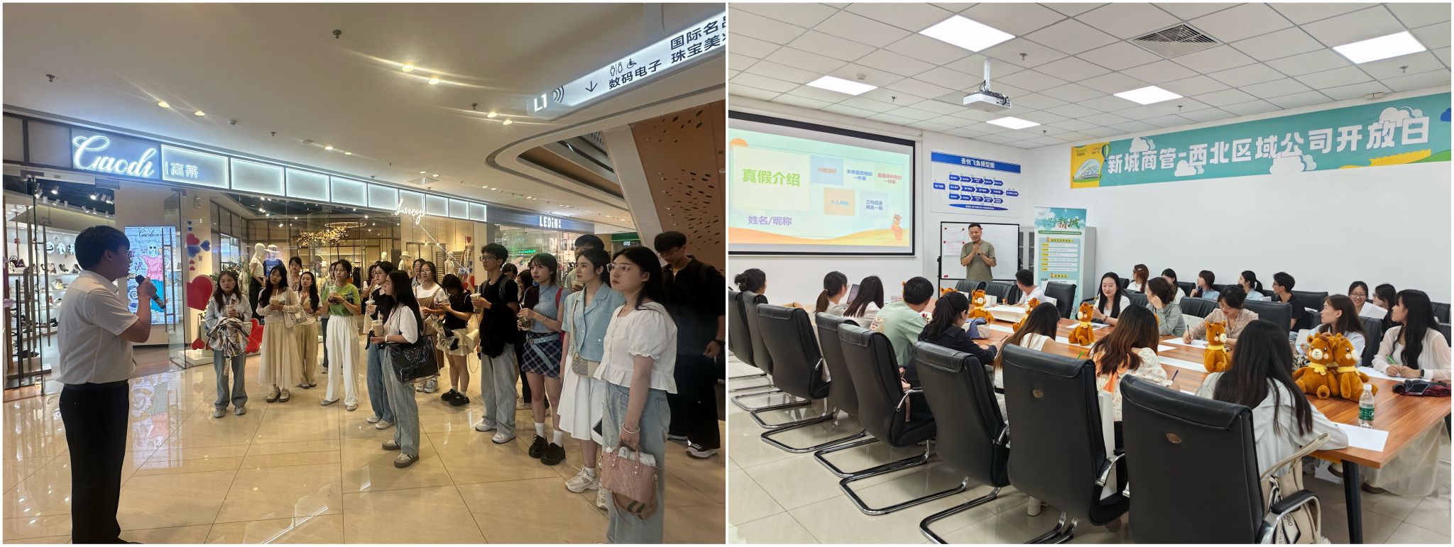 为丰富在校员工的职业认知和职场体验,搭建公司与用人单位之间高质量职业发展交流实践平台,6月13日下午,williamhill英国威廉希尔25届本科生辅导员蒋艾琳带队,公司本科生、研究生一行20人赴西安西咸吾悦广场参加新城商管西北区域校园开放日”活动,新城商业西北区域副总经理(生态运营)王春华、副总经理(用户体验)孙仙杰、行政人事部副总经理李怡参加活动。