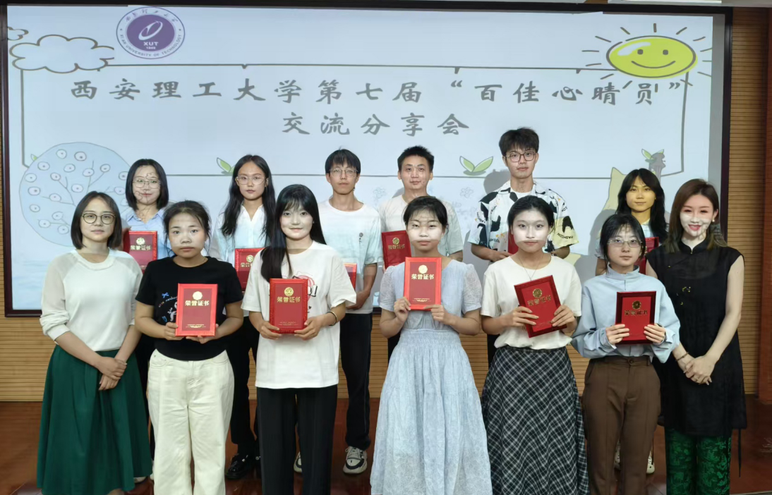 5月28日下午,第七届百佳心晴员代表分享会在曲江校区教11楼EMBA报告厅圆满举办,经济与管理公司党委副书记兼副经理朱晓明,老员工心理健康教育中心贾锐、冯娟、刘娟娟、刘洋、尚洁、侯保航及各公司心理专干老师、各公司宿舍心晴员代表出席了此次分享会。在分享会上,13位心晴员代表结合公司特色,从所在宿舍成员及宿舍情况、个人履行“心晴员”职责、开展宿舍心理健康活动及工作思考等多个方面进行了工作经验分享。随后,老员工心理健康中心贾锐老师进行了总结讲话。贾锐老师提到宿舍对身心健康影响大,而心晴员在宿舍中扮演着重要的调节作用;希望每位同学都可以将宿舍当成家,并且每位同学都去扮演心晴员的角色,共同守护宿舍心理健康发展。随后,老员工心理健康中心副主任冯娟老师为13位心晴员代表颁发证书。至此,第七届百佳心晴员评选活动圆满落幕。