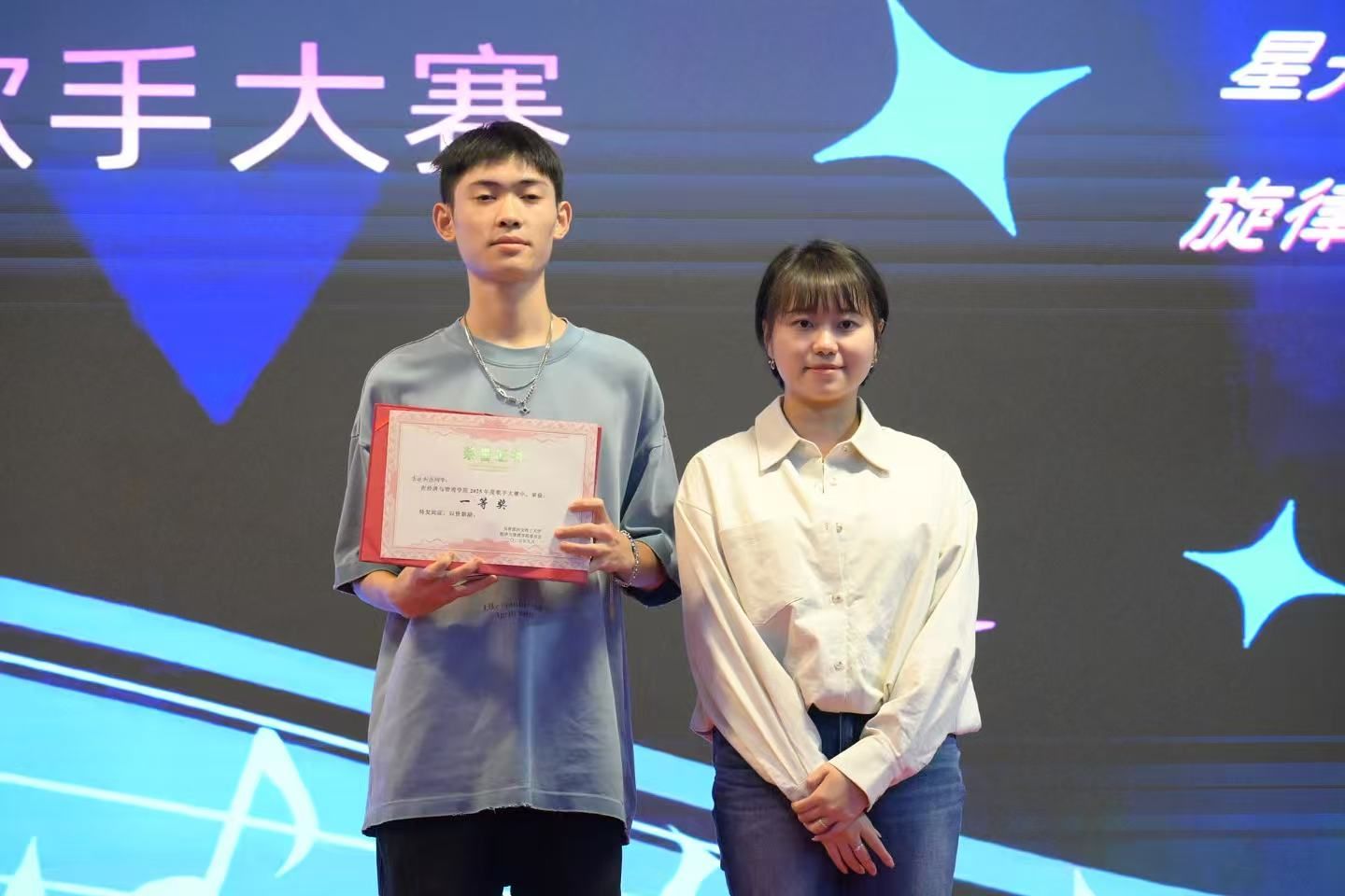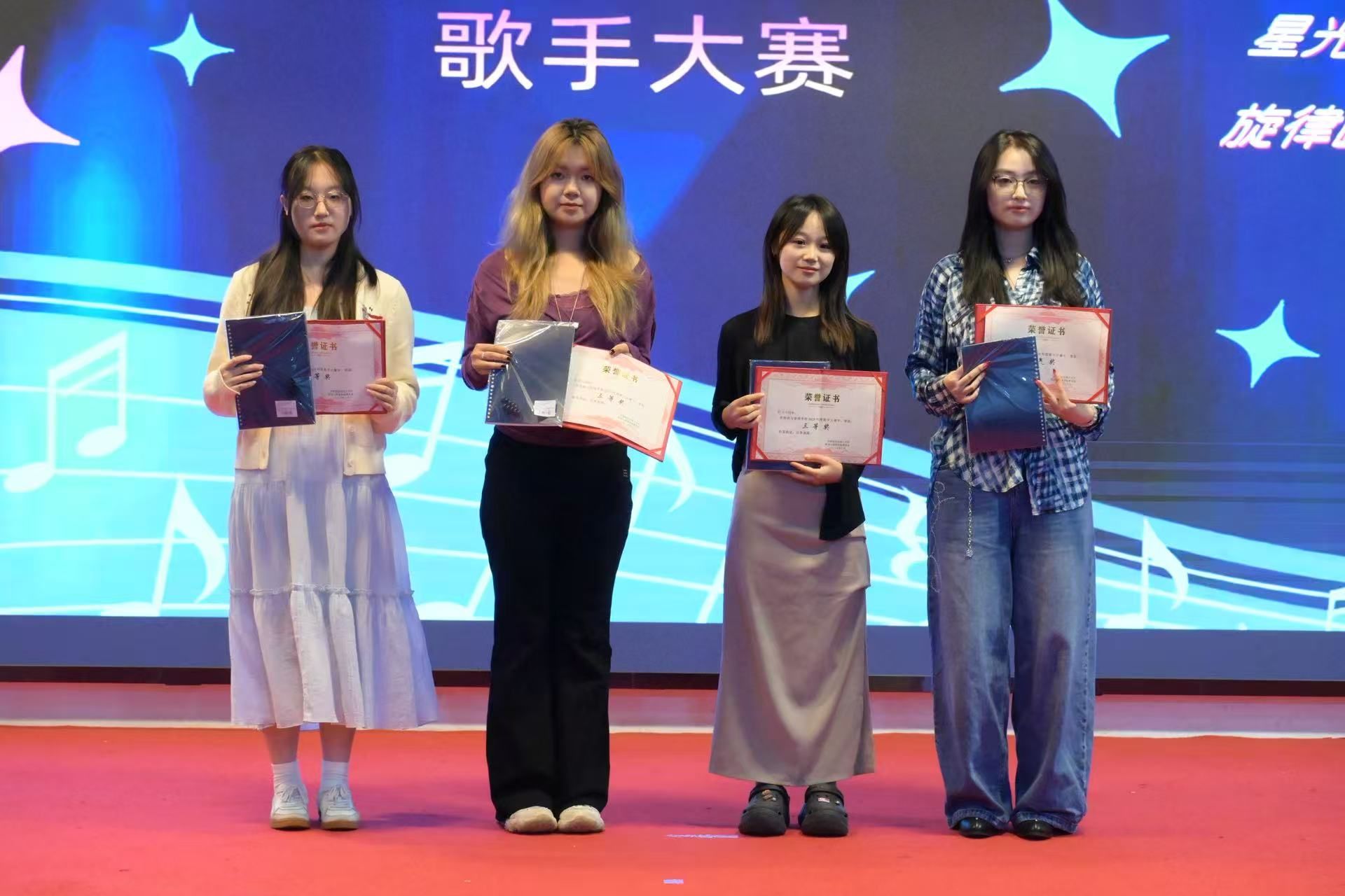 本次比赛分为初赛和决赛两轮。初赛角逐中,24组选手依次登台,演唱各自准备的一首完整曲目,排名前七的选手晋级决赛。经过近两个小时的激烈角逐,李迪溯源获得一等奖,他以一首《天天》惊艳全场,细腻的转音与温柔的情感诠释,将歌曲里的甜蜜与期盼娓娓道来,每一个音符都精准叩击听众心弦;获得二等奖的是何怡娴与钟延梓,何怡娴凭借《说散就散》唱出了情感里的洒脱与释然,略带沙哑的嗓音充满故事感,钟延梓则用《孤单心事》勾勒出青春里的细腻情愫,低吟浅唱间引发全场共鸣;获得三等奖的是舒子千、王苏怡、张亦涵与张诗雨,舒子千的《天空》以清澈嗓音描绘出辽阔意境,王苏怡的《若把你》用灵动唱腔传递出懵懂心动,张亦涵的《11》凭借独特的节奏把控展现活力,张诗雨的《如愿》则以深情演绎致敬美好,四位选手各有风格,共同为大赛留下了精彩瞬间。