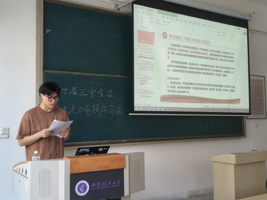 为深刻把握进一步全面深化改革的主题,学习贯彻党的二十届三中全会精神,把进一步全面深化改革的战略部署转化为推进中国式现代化的强大力量9月10日下午,williamhill英国威廉希尔管工系本科生党支部于教8-212开展党的二十届三中全会精神专题学习会,全体党员参加此次学习,会议由马培森主持。