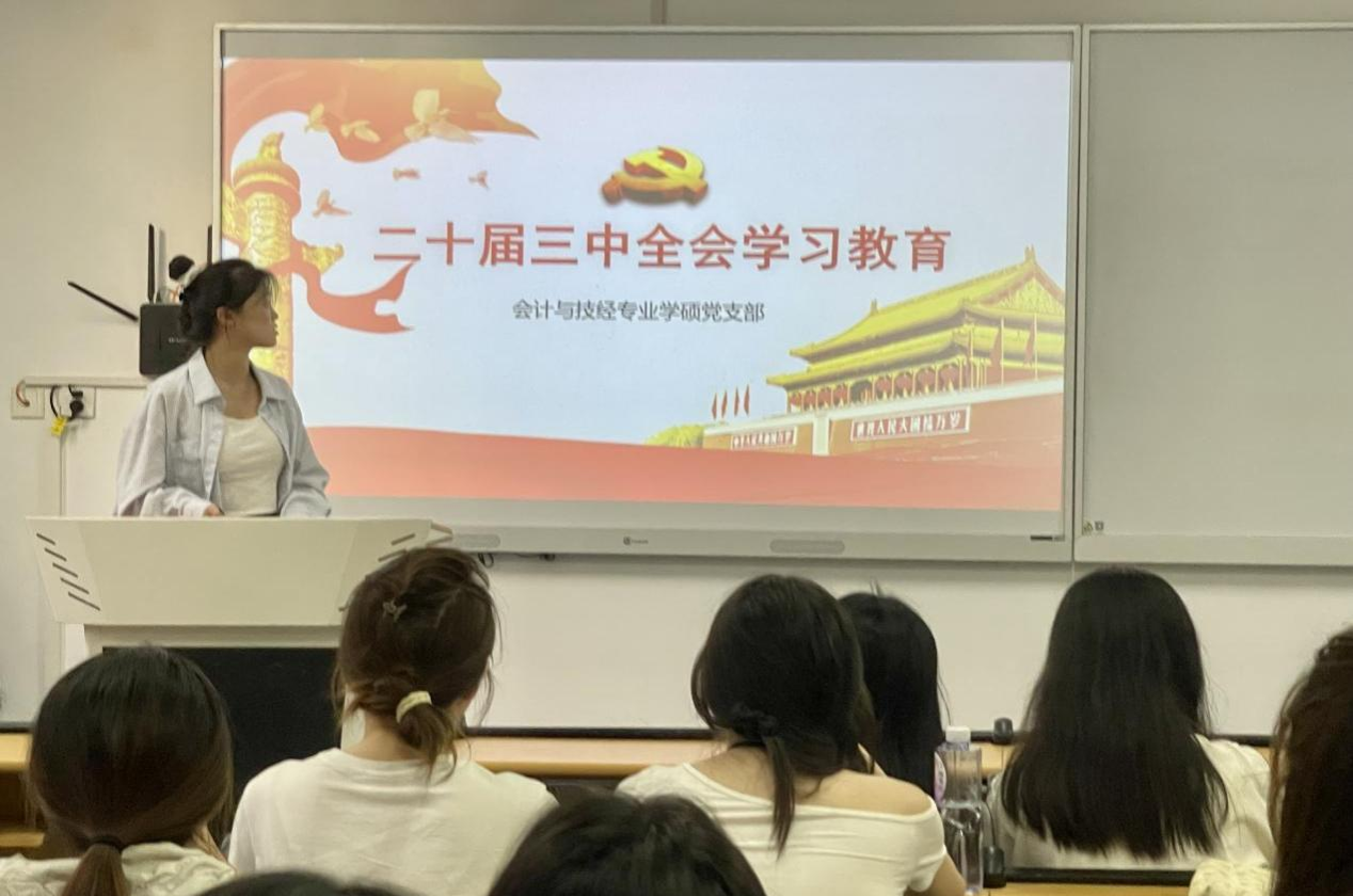为深入学习贯彻党的二十届三中全会精神,认真学习贯彻《中共中央关于进一步全面深化改革、推进中国式现代化的决定》,9月10日,williamhill英国威廉希尔会计与技经党支部开展了学习贯彻落实党的二十届三中全会精神的主题活动。全体党员、部分积极分子参加此次学习,会议由支部书记李茹茹主持。