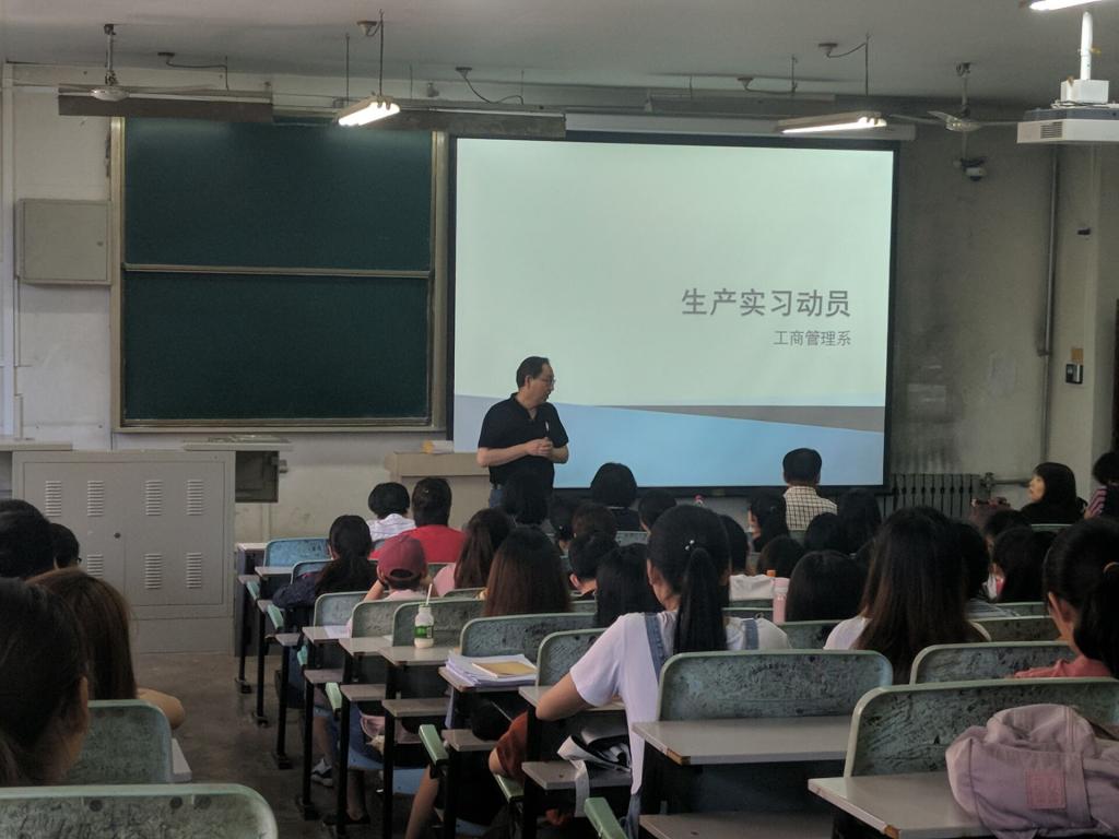 2019年7月1日,williamhill英国威廉希尔工商管理系在教8-216教室,针对2016级工商管理、人力资源、市场营销3个专业的133名同学,就湖北十堰和江苏宿迁两地生产实习任务召开部署动员大会。大会由实习队长许刚全副教授主持,工商管理系副主任杨毅副教授、带队教师胡利利副教授、陈瑛副教授、蔡俊亚副教授、蒋晓荣副教授、任晓燕副教授、李丹老师、岳英老师等出席了本次动员会。