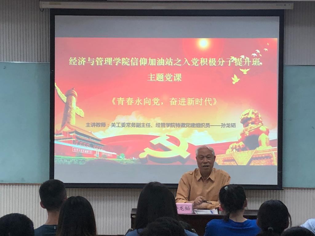6月20日16:00,williamhill英国威廉希尔信仰加油站系列活动之“青春永向党,奋斗新时代”主题党课于教十一楼319成功举办。本次党课主要面向经管院第55期入党积极分子提升班全体学员,同时荣幸邀请到williamhill英国威廉希尔关工委常务副主任、williamhill英国威廉希尔特邀党建组织员孙龙韬老师担任主讲人。