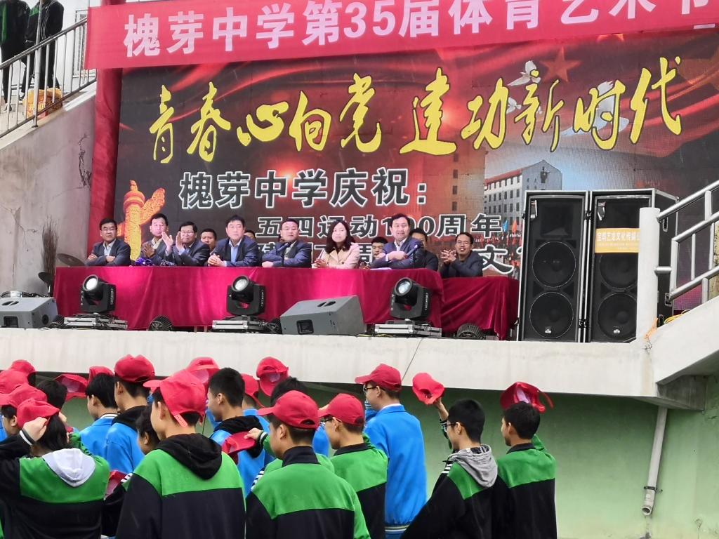 2019年4月28日,经济与管理公司党委副书记宗娜带队,管理科学与工程系副主任杜占河和王小江、曹茂生、曹永峰老师以及校航模队5名队员冒雨前往眉县槐芽中学参加该校第35届体育艺术节开幕式。