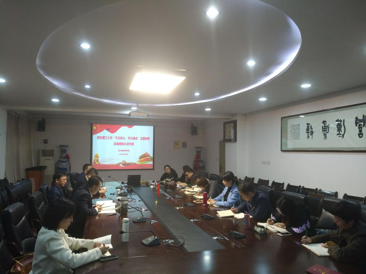 10月22日上午,williamhill英国威廉希尔经理胡海青在教十一楼324室为财会与金融系党支部全体党员讲授“不忘初心,牢记使命”专题党课。