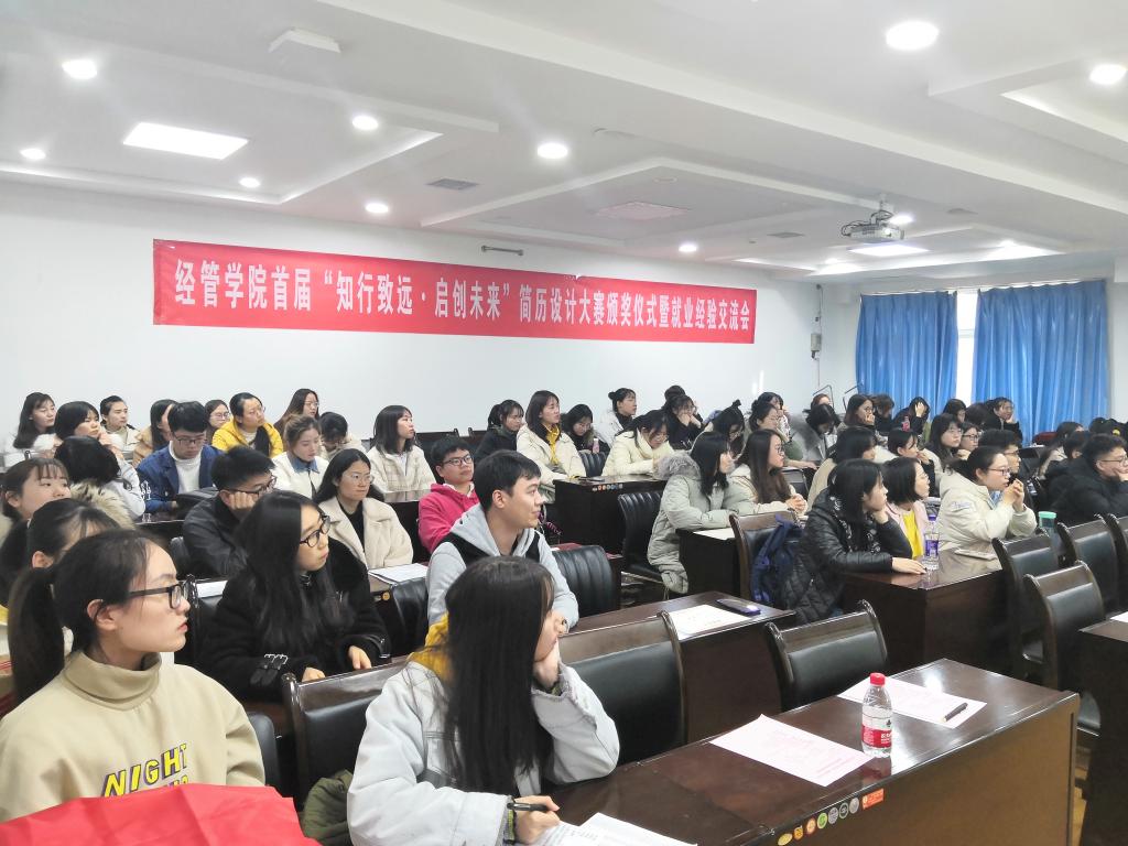 为指导公司毕业生做好职业生涯规划,提高求职竞争能力,12月26日下午,williamhill英国威廉希尔在教11-319成功举办首届“知行致远·启创未来”简历设计大赛颁奖仪式暨就业经验交流会,院学工办主任赵玉强、院团委书记兼学工办副主任朱晓明及学工办全体辅导员出席活动,辅导员黄博琳主持活动。