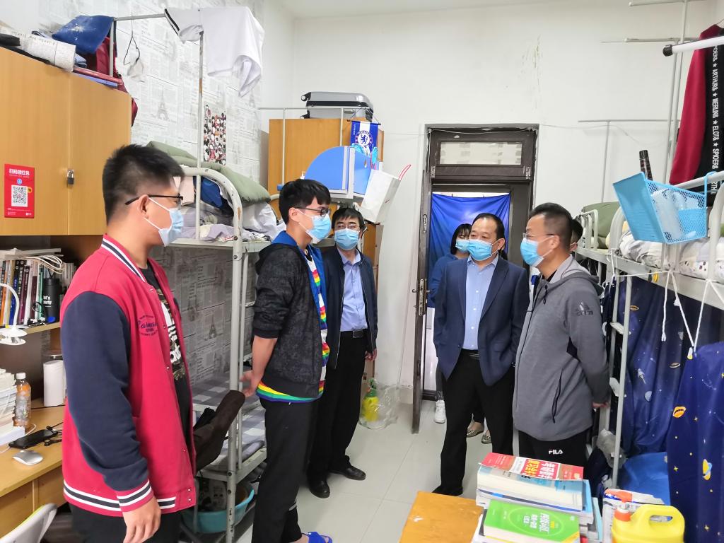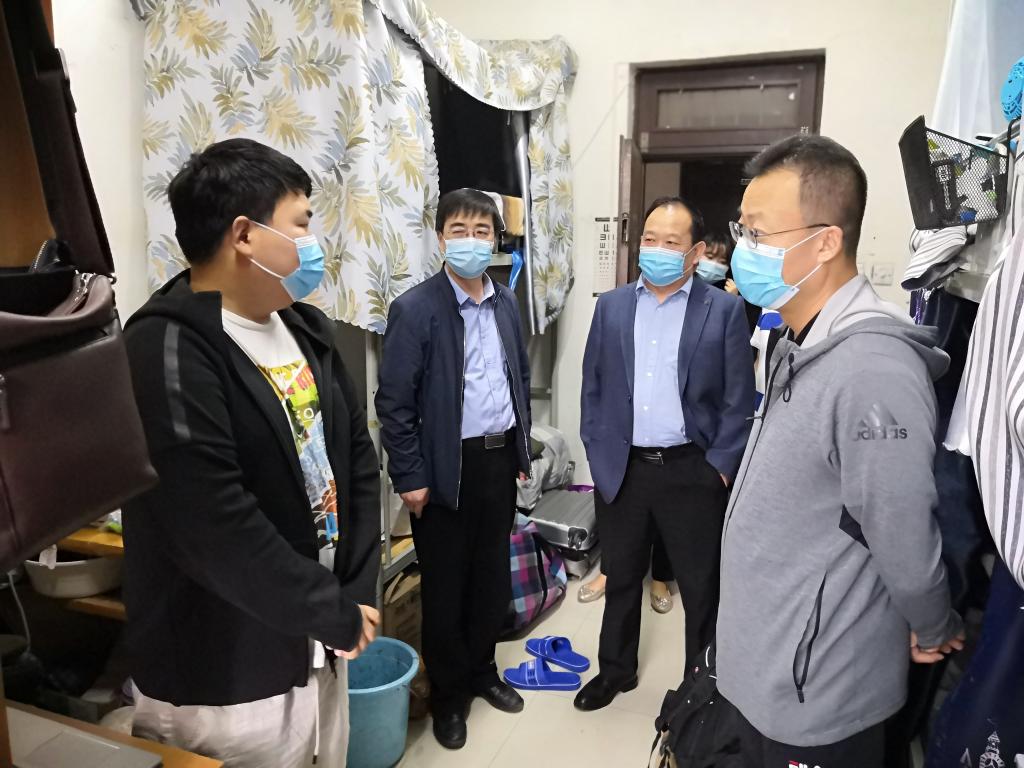 为进一步加强校园疫情防控,保障员工返校各项工作安全、有序、平稳进行,更加详细掌握员工返校后的生活学习状况,5月13日上午,经管与管理公司党委书记王瑞生、经理胡海青、副书记兼副经理白华煜、学工办主任赵玉强、公司团委书记朱晓明、毕业班辅导员林炳洪、黄博琳到员工公寓看望已返校员工,并对员工宿舍的卫生、安全、疫情防控等进行了检查和督促。