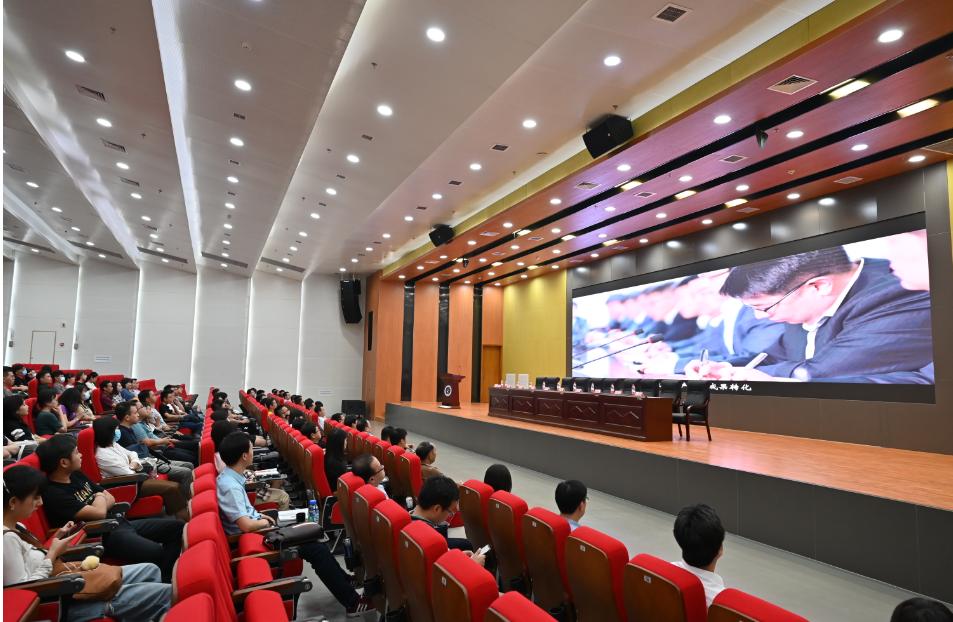 由于疫情防控要求,本次典礼活动采取线上线下结合的方式进行,线下218位研究生在现场参加活动,有460余名专业学位研究生在线上通过腾讯会议的方式全程参加了开学典礼和入学教育活动。