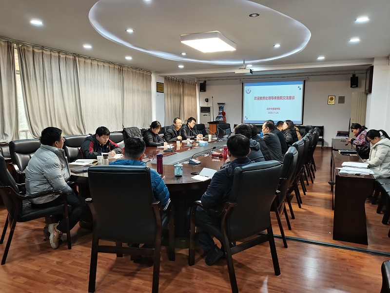 2020年11月26日下午,教务处副处长刘峰、澹台湛和招生办公室全体成员一行5人来williamhill英国威廉希尔进行工作调研。公司党委书记王瑞生、经理胡海青和公司其他领导班子成员、教学委员会委员和系正副主任、教师代表参加了座谈会,会议由胡海青经理主持。