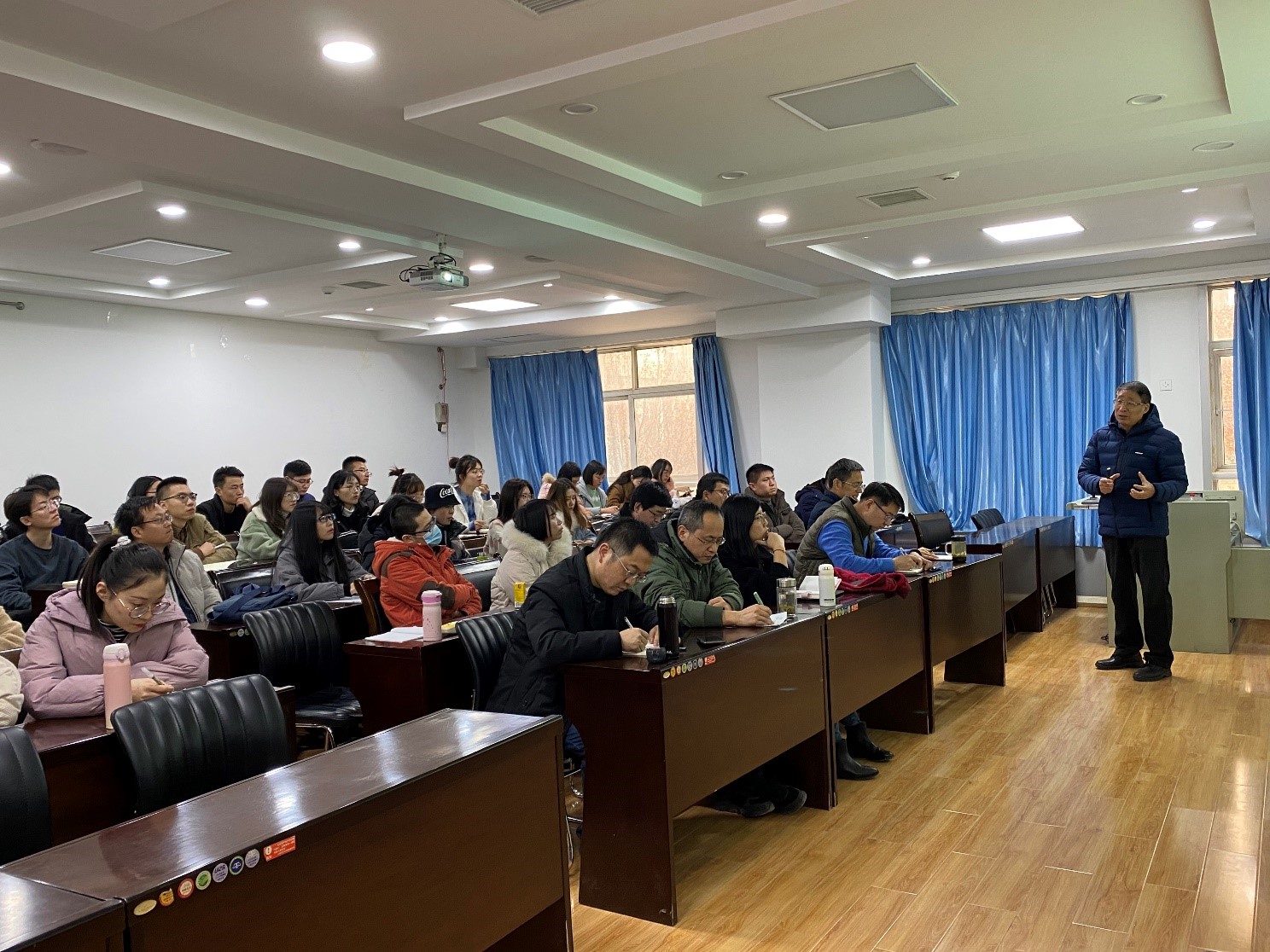 李随成教授结合自己多年的研究经验,首先从研究对象和内涵两个方面对管理科学研究进行了诠释,归纳总结了管理科学理论的一般表达方式,然后从基础元素、命题与命题类型、研究路径等多个方面详细阐述了如何开展管理科学理论研究,最后从与现实世界的关系角度对比分析了各种研究范式,并区分了三类调查实证研究方法。在讲解研究方法的过程中,李随成教授还穿插介绍了国家自然科学基金申报书的写作要点,并与师生进行了现场交流,回答了师生所提问题。