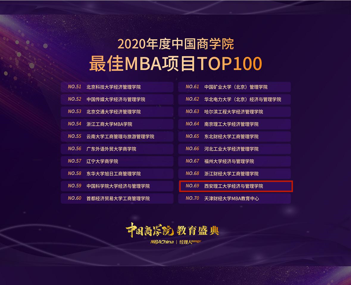 “中国商公司最佳MBA项目TOP100”排行榜在业内受到广泛关注。此次排行榜由MBAChina与《经理人》杂志联合评选,秉承公平、公正、公开的原则,历时8个多月,考评了全国200多个MBA项目,完成了数据采集、院校申报、问卷调查等工作,综合团队力量、课程项目、学员评价、品牌影响力等十个评选维度,最终推出了“2020年度中国商公司最佳MBA项目TOP100”等榜单。MBAChina与《经理人》杂志作为完全独立、公正的第三方门户媒体,其评选具有很高的客观性、公正性及权威性。