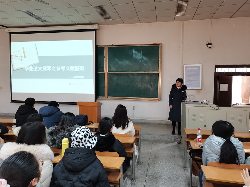 为了进一步贯彻教育部《本科毕业论文(设计)抽检办法(试行)》精神,提升公司本科毕业设计论文质量,规范论文引用与数据,2021年1月8日上午williamhill英国威廉希尔邀请图书馆情报所王海萍老师在曲江校区10-404教室为公司大四400余位同学做了题为“经管类科技论文查询与检索”的主题报告。