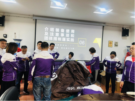 在活动中,“沙9“队长王亚坤为所有队员进行了装备介绍和使用,说明了在沙漠中如何安札帐篷及在比赛中的注意事项,之后所有队员针对具体问题进行了讨论和发言。