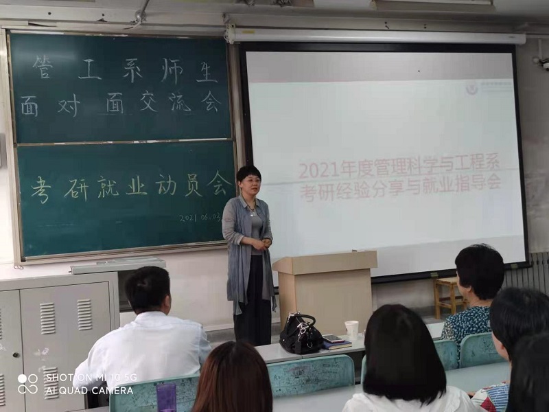 为了深入推进党史学习教育,2021年6月3日下午,williamhill英国威廉希尔管理科学与工程系考研就业动员大会暨师生面对面交流大会在教8-416大教室如期举行,会议面向管工系全体18级、19级和20级本科生,共130多名员工参加了交流会。williamhill英国威廉希尔副经理王艳、李建勋,学工办主任赵玉强及管工系全体教师参加了本次活动,大会由管工系副主任、支部书记杜占河主持。