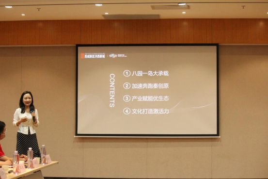 王文莉副经理做总结发言,她对本次活动的圆满举办给予了充分的肯定,强调创新和技术是园区建设的原动力,鼓励广大学员不仅要注重企业硬科技成果的转化,也要考虑管理创新。最后希望通过此类研学活动加强公司和企业之间的联系,相互合作,共同创新。