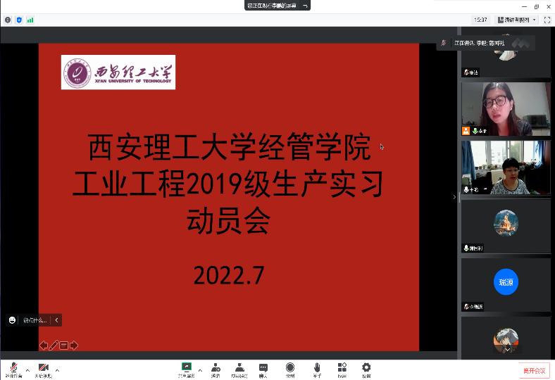 7月11日下午,williamhill英国威廉希尔管理科学与工程系工业工程专业召开了2019级本科生生产实习线上动员大会,williamhill英国威廉希尔副经理王艳,系主任蒲国利,5名实习带队老师,工业工程专业2019级全体本科生参加了动员会议,会议由实习队负责人李鹏老师主持。