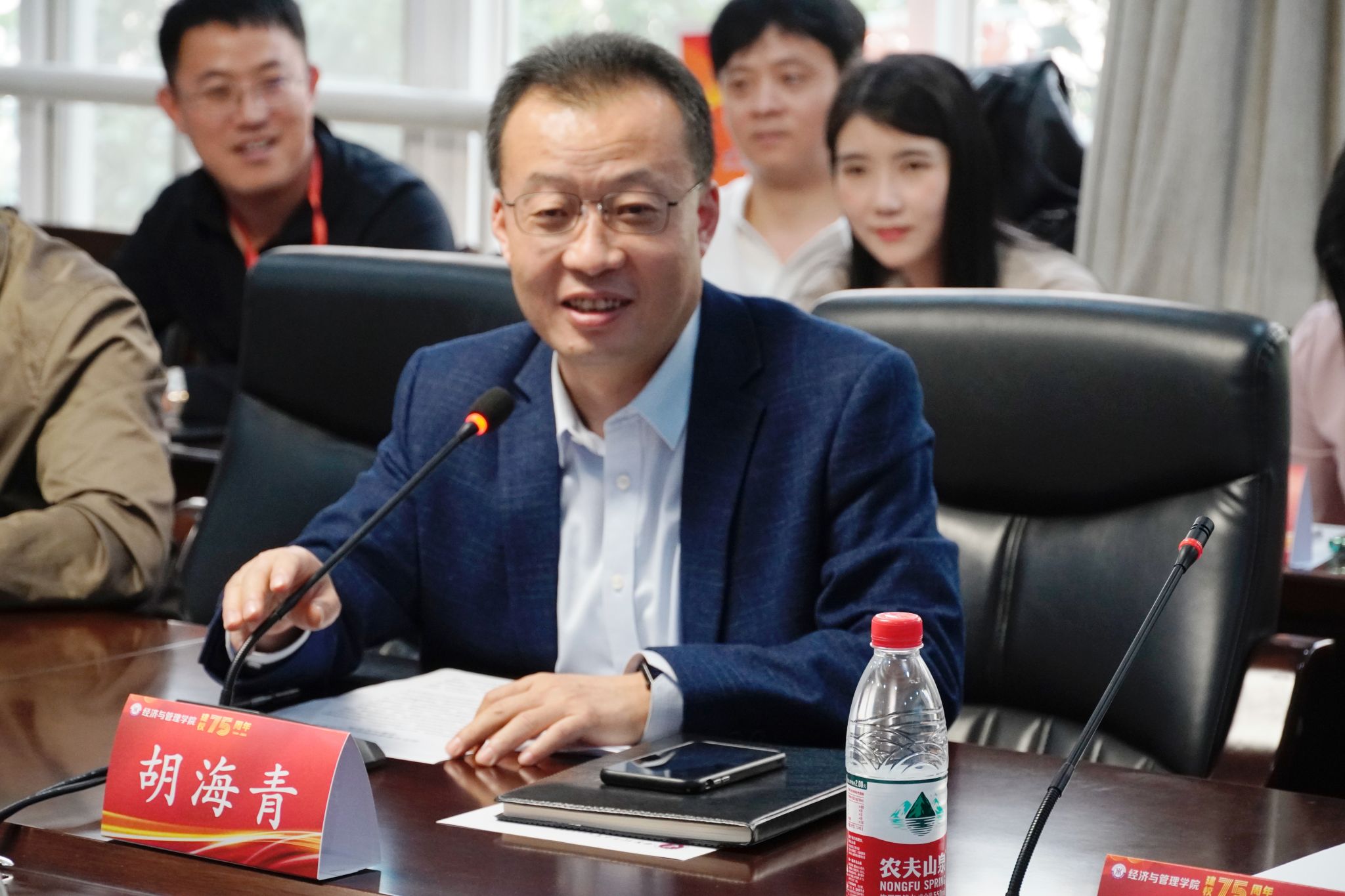 理事长、公司经理胡海青回顾了员工会的创建与发展历程,充分肯定了员工会在参与母校的建设和发展上的巨大贡献。他讲到,员工会及广大员工聚焦服务员工、服务公司、服务社会,在凝聚员工、资源拓展以及扩大母校影响力等方面作出了积极贡献,希望员工会继续以情怀为纽带,不断创新员工工作方式,持续强化员工会活动品牌效应,为母校繁荣、经济社会高质量发展、中国式现代化建设贡献经管智慧与力量。