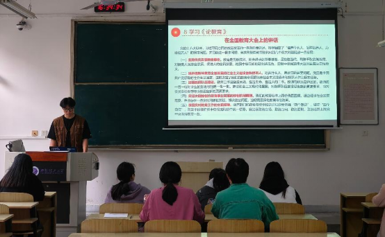 会上,马培森组织支部党员认真学习习近平总书记《论教育》中的重要理念,通过深入分析其中关于教育公平与教育质量提升的部分、组织观看相关教育成果展示视频,帮助大家加深对《论教育》内涵的理解;随后,马培森带领支部党员学习习近平总书记在全国教育大会上的讲话精神,也让支部党员有了更深入的理解和思考;最后,梁姝作会议总结,她阐释了教育强国战略的时代意义,强调青年党员要把《论教育》列入学习计划,深刻领会其政治意义、理论意义和实践意义,要求全体党员以实际行动响应号召,不断探索创新,勇于担当作为,积极发挥先锋模范作用,为实现教育强国的伟大目标贡献自己的青春和智慧。