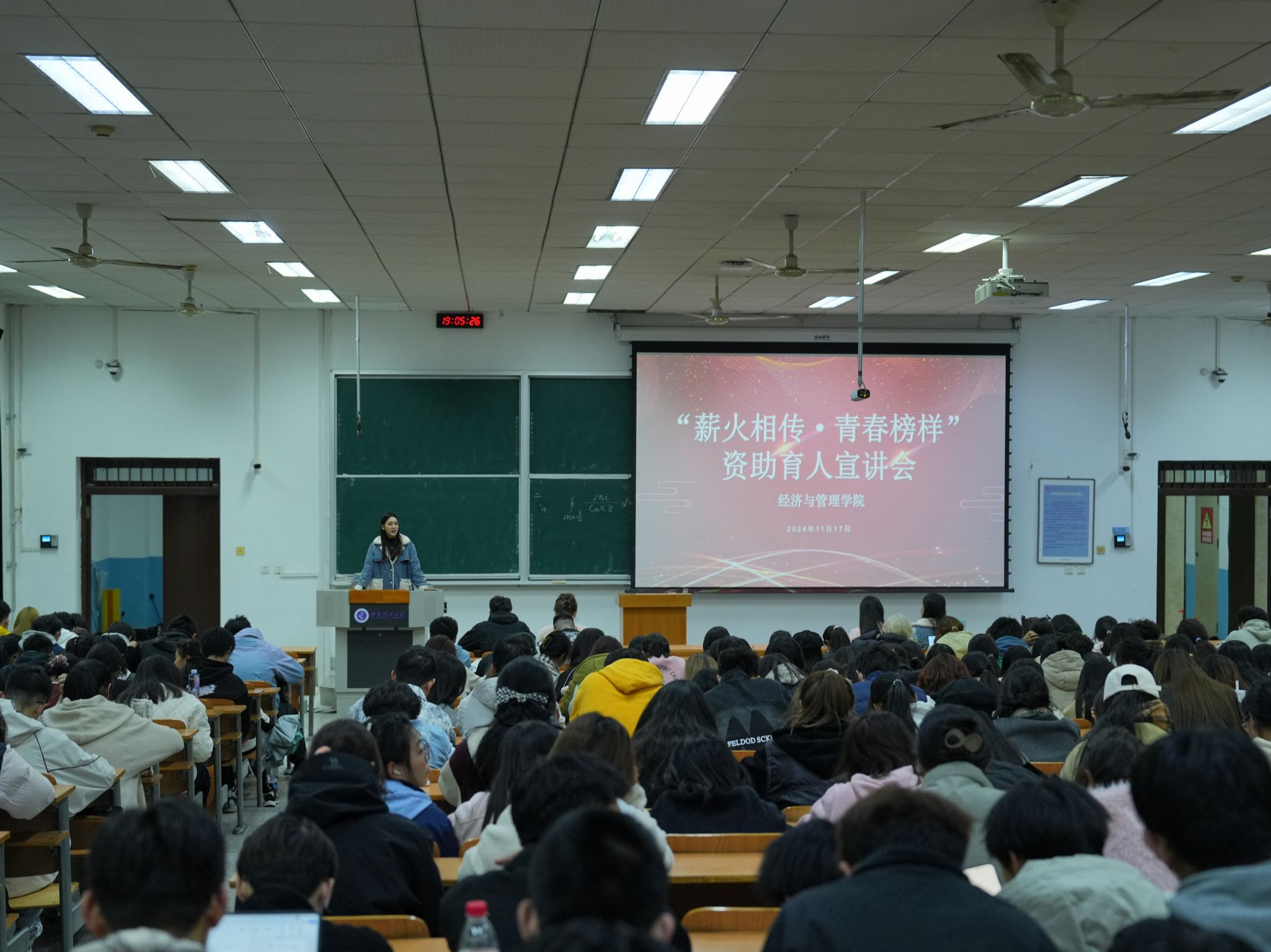 11月17日晚19:00,williamhill英国威廉希尔在10-401教室成功举办了“薪火相传·青春榜样”主题资助育人宣讲会。此次活动旨在加强榜样宣传,树立榜样标杆,发挥先进典型的示范引领作用,同时大力宣传资助政策,展示优秀员工的精神风貌。