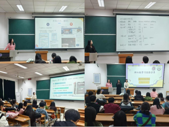 在分享会上,三位同学详细地从听力训练、阅读技巧、词汇积累、写作提升等多个方面展开经验分享。四级高分同学刘锦仪从备考积累、考前自测及考中注意事项三个方面进行了分享,同时,也为同学们具体讲述了做四级套题的方法,细心解答了同学们提出的问题六级高分同学高艾楠同学从试卷结构、考试顺序、复习重点三个方面进行了分享,尤其在听力和阅读两方面以及单词的积累上做了更细致的讲解,她提醒同学们,单词积累对于应试高分是必不可少的,建议同学们词汇量越高越好。六级高分同学王昕锐同学从题型分布、复习方法、答题顺序及时间分配方面进行了分享,详细地从听力、阅读、写作、翻译四方面向同学们讲述了她的“独家”复习方法,并针对性地向同学们推荐了练习听力软件和英语写作模板