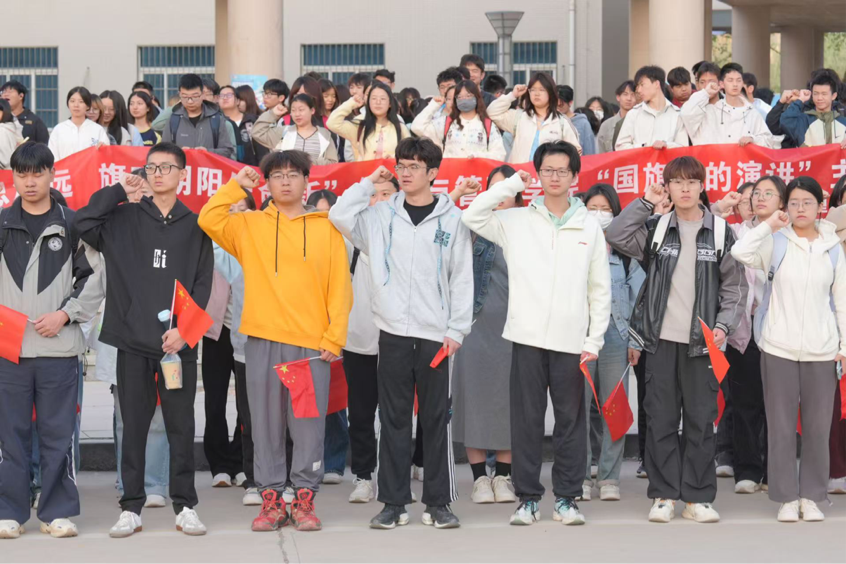 4月7日上午七时,williamhill英国威廉希尔在曲江校区逸夫科技楼前举办“春回大地思源远旗映朝阳使命新”国旗下的演讲主题团日活动。院团委书记闫如玉,辅导员刘静、黄博琳,第五期入团积极分子提高班全体学员,全体2024级本科生参加。