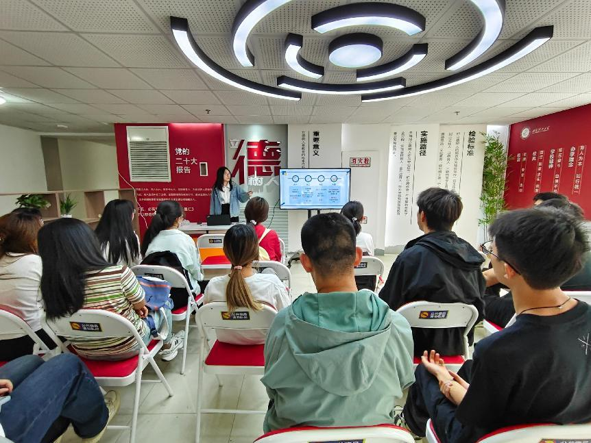 本次班会特邀公司大四员工陈璐怡担任主讲嘉宾。会议伊始,陈璐怡从自身经历出发,坦言大一时也曾因专业课程跨度大而感到迷茫。她建议学弟学妹,课堂学习是根基,但更要主动探索兴趣方向,通过选修课、科研项目或自身特长,找到自己的“长板”。此外她还分享了在学而思实习的经历,鼓励同学们通过校内实践、导师推荐、企业官网等多渠道争取机会。在提问环节中,同学们围绕“如何寻找实习机会”“非技术岗位的竞争力提升”“考研与就业如何抉择”等问题展开讨论,陈璐怡一一解答并为学弟学妹们提出了忠告“机会是留给有准备的人。”