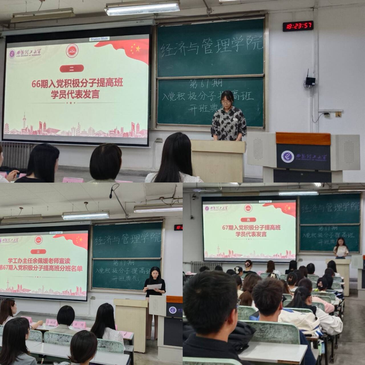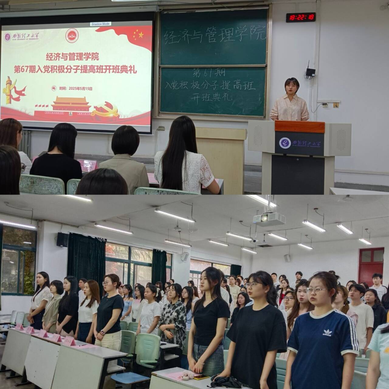 为进一步加强对入党积极分子的培养、教育和考察,提高员工思想政治素质和政治理论水平,5月15日williamhill英国威廉希尔入党积极分子第67期提高班开班典礼在教8-215教室举行。经济与管理公司党委副书记兼副经理朱晓明、学工办主任余佩媛、学工办辅导员及67期入党积极分子提高班全体学员参加本次大会。