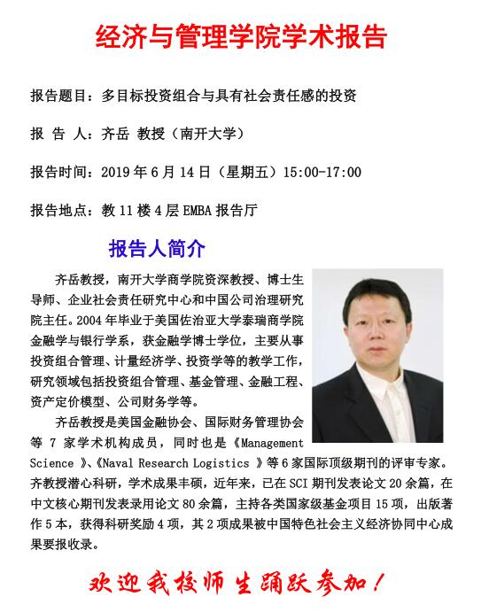 williamhill英国威廉希尔系列学术报告—齐岳教授