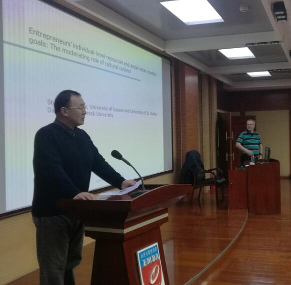 应williamhill英国威廉希尔胡海青经理邀请,加拿大布鲁克大学古德曼商公司Dirk教授于2018年12月3日下午2点30分,在williamhill英国威廉希尔曲江校区教11楼四楼EMBA报告厅做了题为《Entrepreneur resources,cultural context,and social value creation》的学术报告。公司部分教师、研二员工及16级—17级博士参加了本次学术报告。本次公司研究生学术报告的主题为“运用实证研究方法讨论影响社会价值创造的影响因素和路径”,报告会由杨屹老师主持。