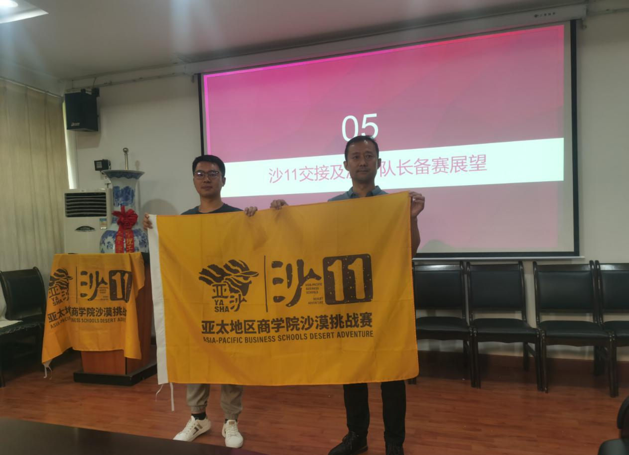 11队长张选龙从“沙10”队长李钰手中接过了沉甸甸的队旗。李钰队长分享了“沙10”的经验,作为队长的体验及对“沙11”的希冀。“沙11”张选龙队长做了备赛展望,并邀请了专业教练姚志鹏对大家进行为期一年的备战指导。姚教练也就自身体会对大家做了简要的介绍。
