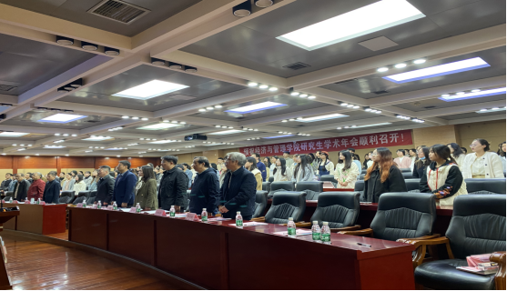 研究生学术年会在庄严的国歌中顺利拉开序幕。周晓辉书记为学术年会开幕式致辞,周书记表示举办研究生学术年会的主要目的是为全体研究生同学们提供一个学术交流的平台和展现学术风采的舞台,希望大家一起畅谈科研人生,感知科研魅力,广纳真知灼见,广聚学术资源,广交学术人才,进一步开阔视野、增进友谊、激励创新、铸就梦想。