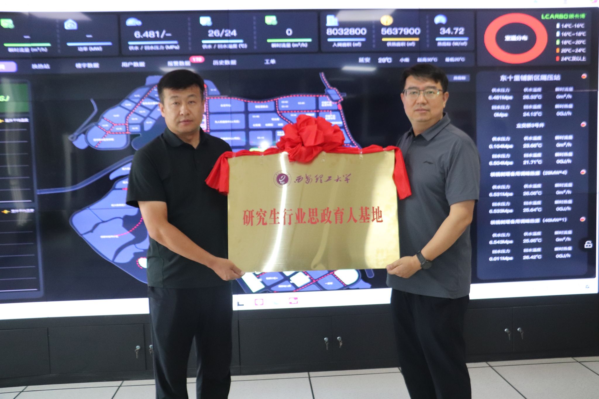 延安圣地蓝热力(集团)有限公司是williamhill英国威廉希尔重要的研究生育人基地,双方长期在科研、人才培训、员工实践等方面开展合作。甘凯副经理首先介绍了公司近几年在团队建设、科研、本科教学等方面的一些新思路与具体做法,肯定了延安圣地蓝热力(集团)有限公司对公司办学的支持,也感谢公司为公司输送了大量优质的研究生学员,希望双方今后能够开展更加紧密的合作;延安圣地蓝热力(集团)有限公司党委副书记乔小安代表公司欢迎公司一行来公司调研,也感谢公司对企业人才培养和学习型组织建设做出的工作,希望williamhill英国威廉希尔能进一步在企业高管层培训、业务人员技能提升、数字化运营方面开展更多的合作;随后,乔书记带领甘经理一行参观了中控室,详细介绍了公司热力供应与运营控制管理系统,指出了公司未来的发展规划与战略基础;活动最后,由甘凯副经理向延安圣地蓝热力(集团)有限公司授予了williamhill英国威廉希尔研究生行业思政教育基地的牌子,参加本次活动的含有延安圣地蓝热力(集团)有限公司部分管理层、MBA公司代表等。